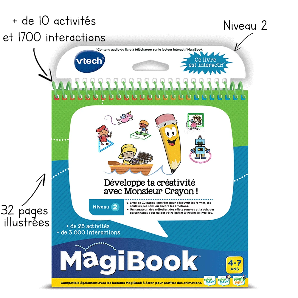 Ce livre MagiBook de VTech est conseillé pour les enfants à partir de 4 ans et jusqu’à 7 ans.
