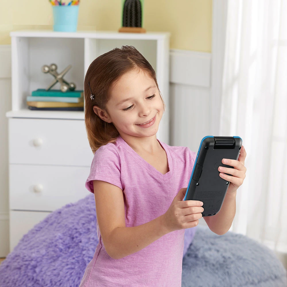 Sans abonnement, votre enfant échange – en Wi-Fi – des messages écrits ou vocaux, des photos ou vidéos avec sa famille ou ses amis et ceci de façon sécurisée. Il peut même ajouter des filtres à ses photos avec l’application V-Snap et les envoyer à ses contacts !
